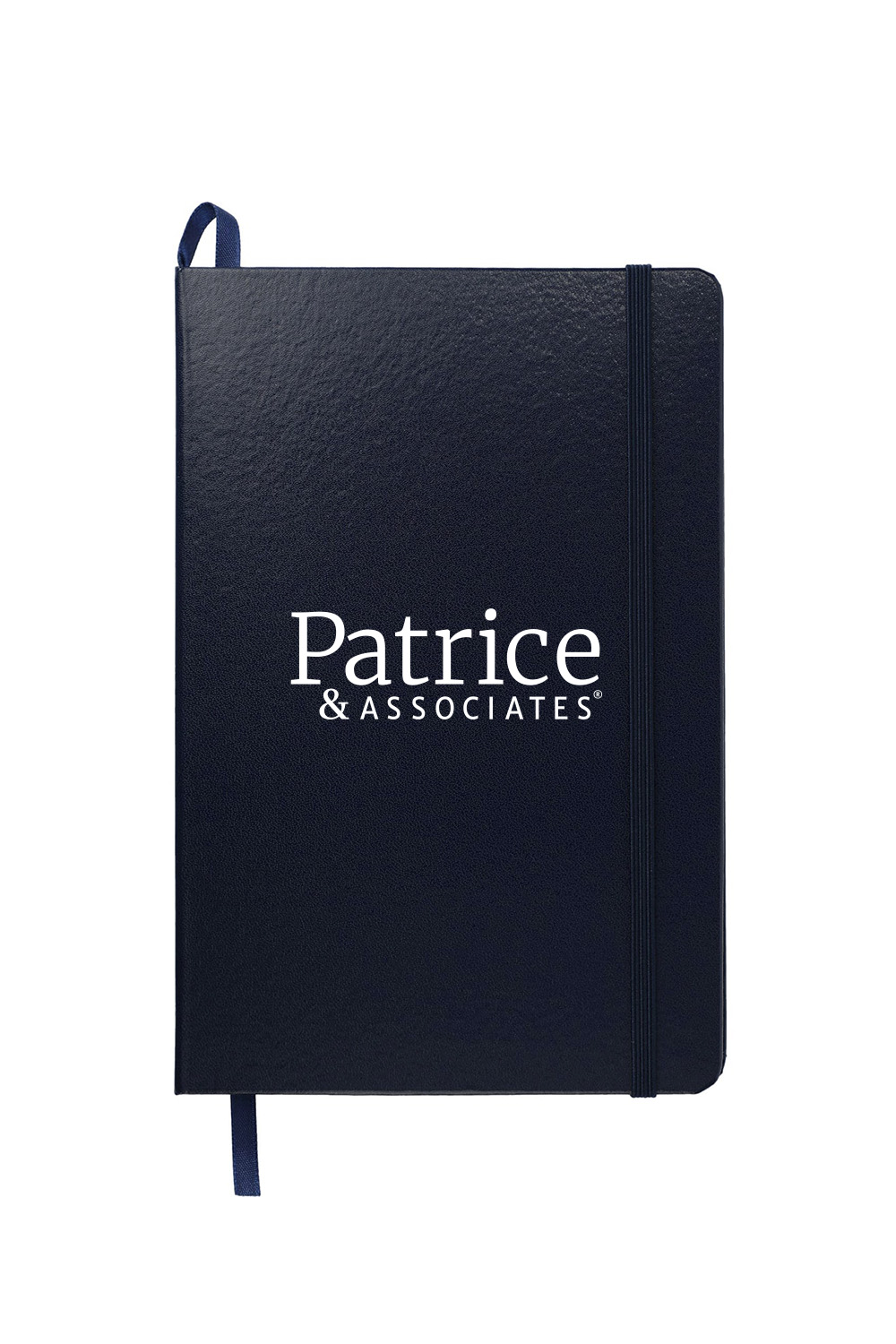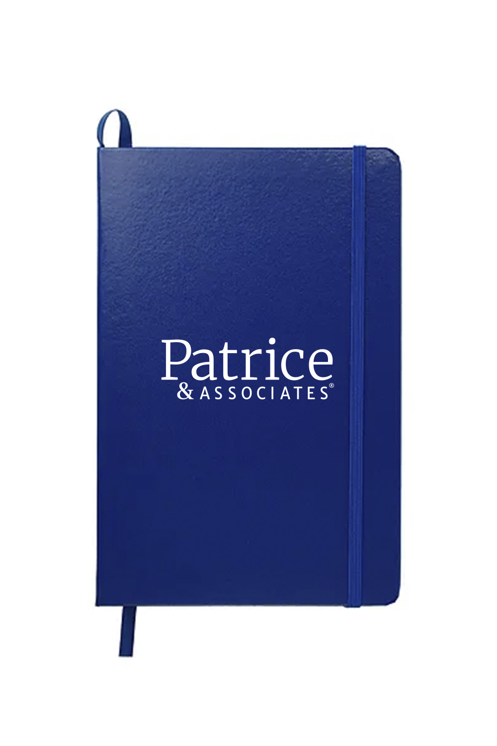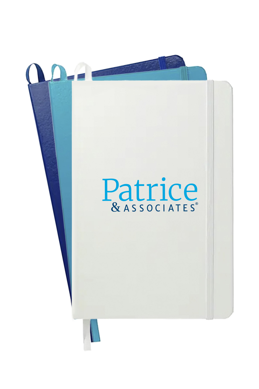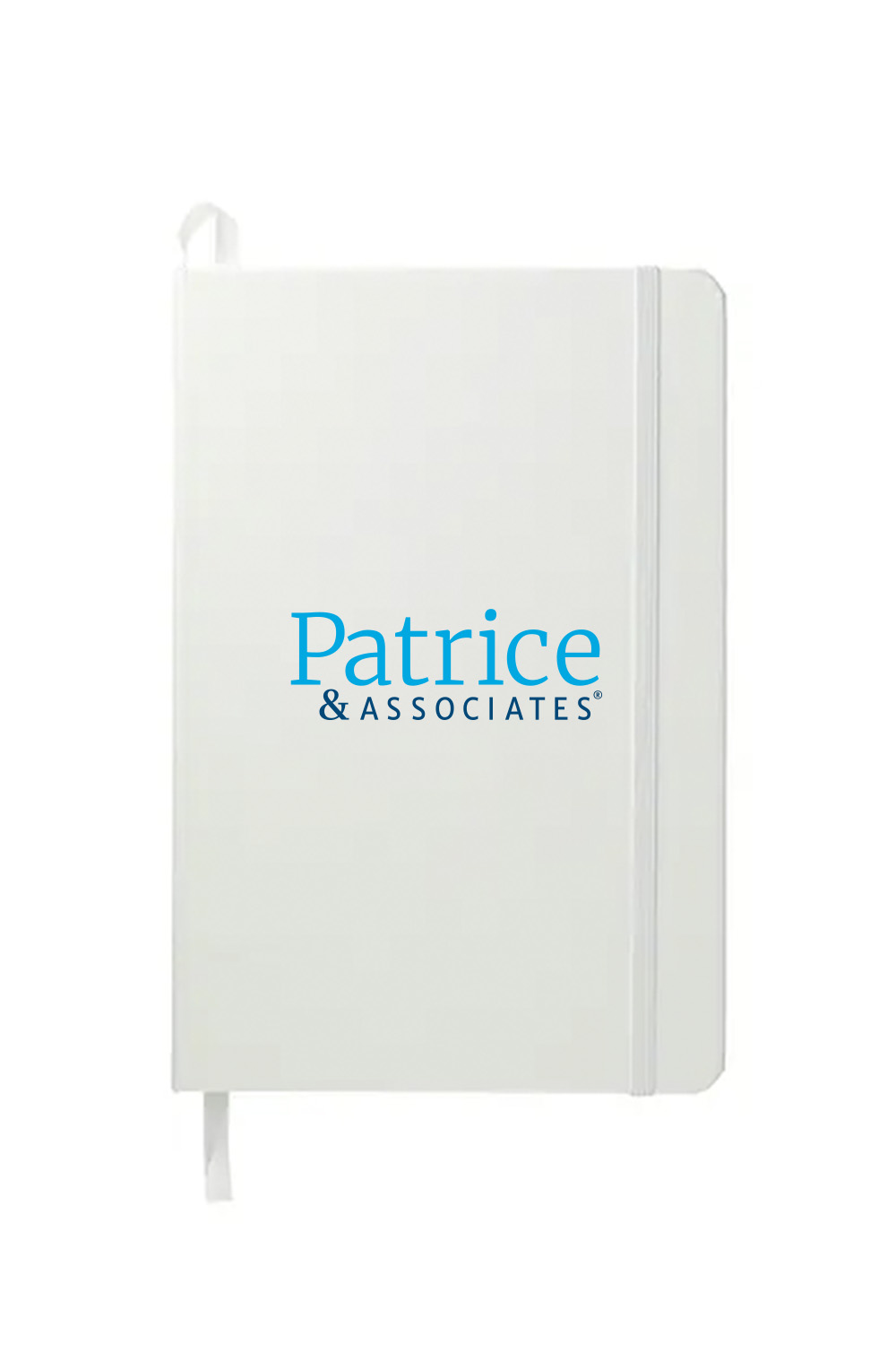 Inside, you’ll find 80 sheets of cream-lined paper for smooth writing, plus thoughtful details like a ribbon page marker, elastic closure, and an expandable back pocket to keep notes and small essentials organized. The Patrice & Associates logo is printed on the cover using Digital Inkjet, delivering crisp, vibrant detail that complements the notebook’s modern aesthetic.